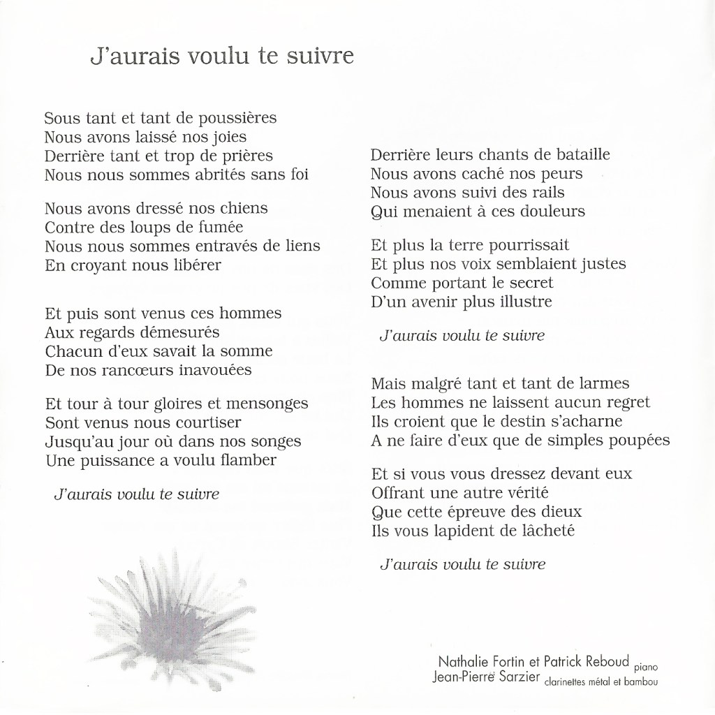 - J’aurais voulu te suivre